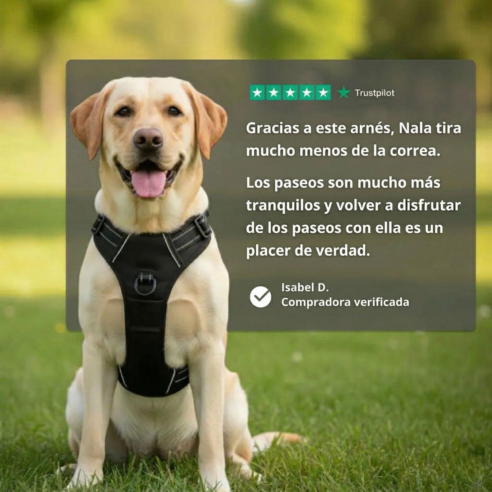 Nuestro arnés reduce drásticamente los tirones y te da la fuerza necesaria para controlar a tu perro sin esfuerzo. Sin embargo, ningún accesorio sustituye al adiestramiento: el arnés es la herramienta perfecta para enseñar a tu perro a no tirar, haciendo el proceso mucho más fácil y menos estresante.